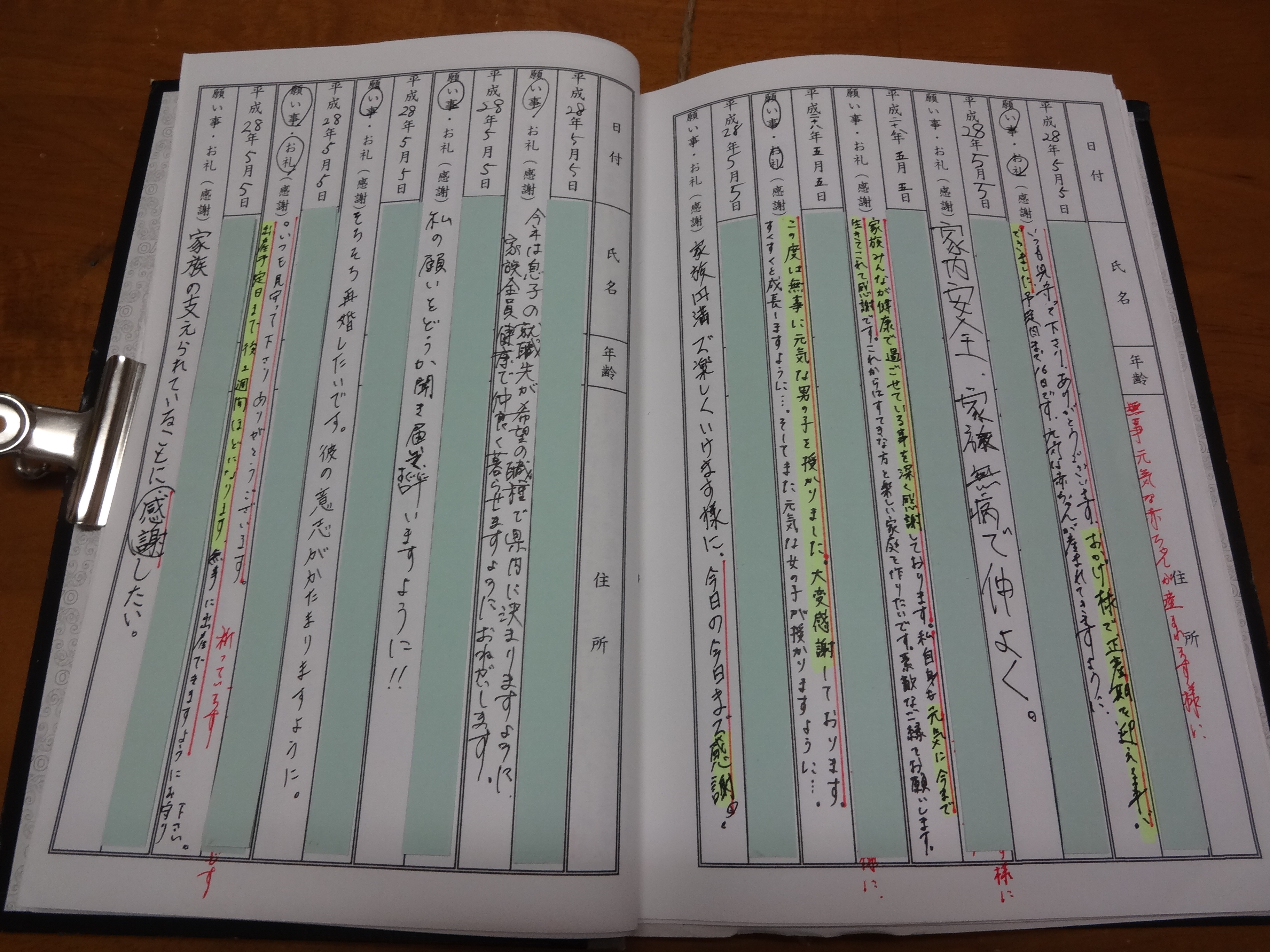 気持ちの整理がついたら、参拝のページを参考に、感謝と願い事を参拝名簿に記入され、、時々お参りをなされてみて下さい。既にお付き合いをなされている方は、将来の事をしっかりとお祈りをされて下さいね。
